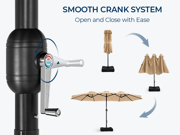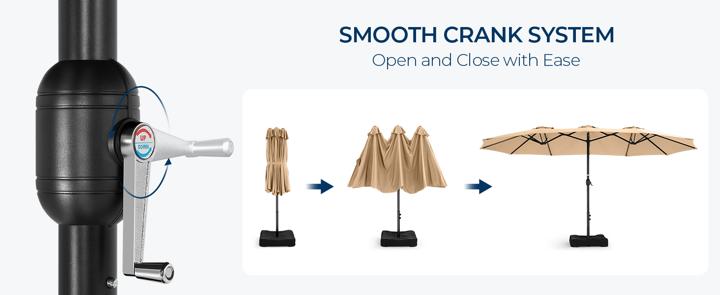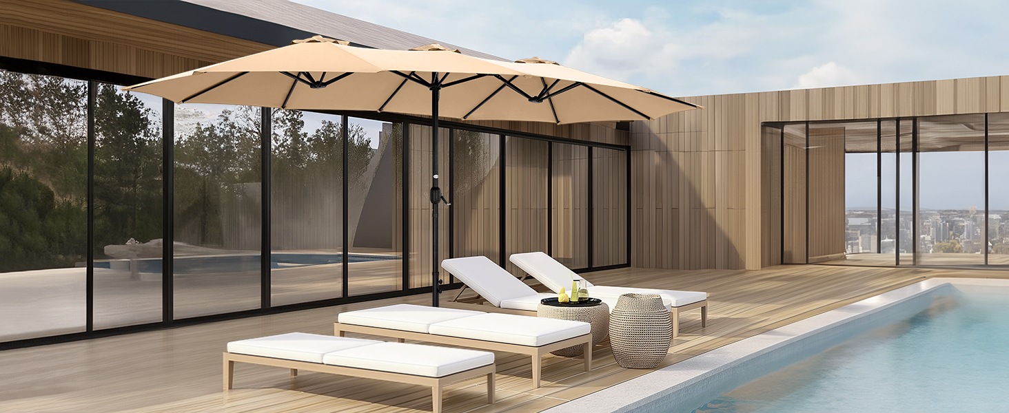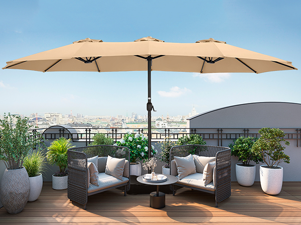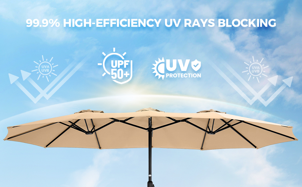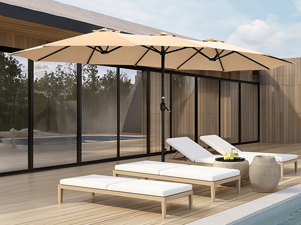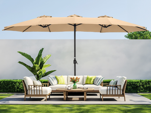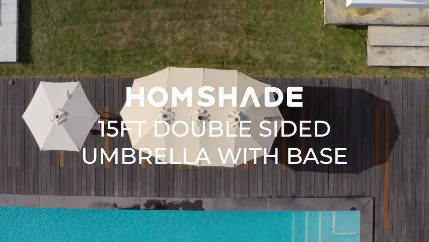 Extra large shade for your outdoor space with HOMSHADE 15ft double-sided patio umbrella,offers multiple functions, perfect for patio;poolside;market and beach relaxation.
