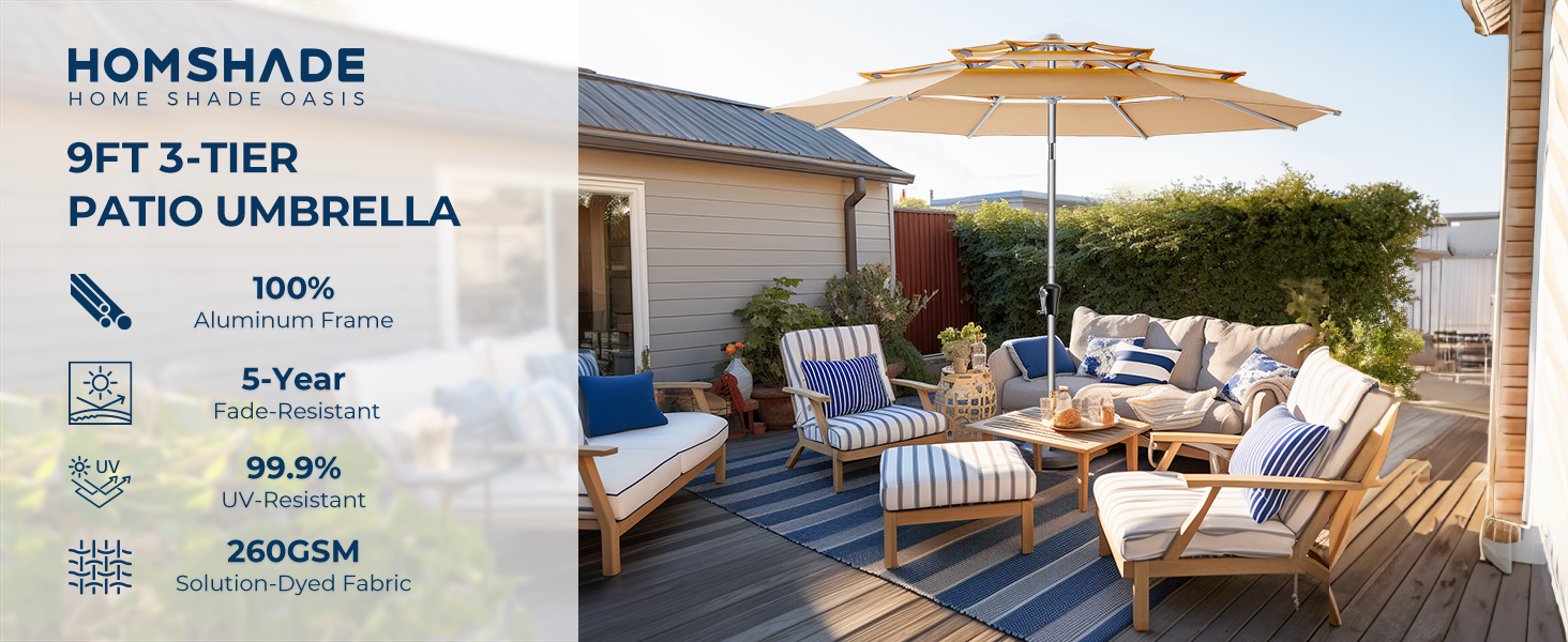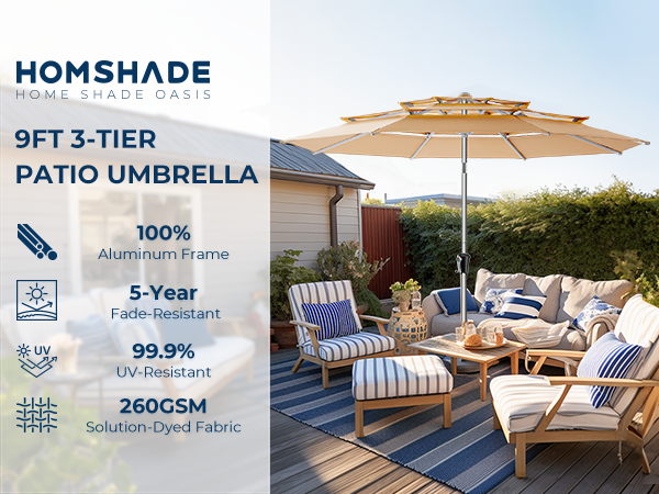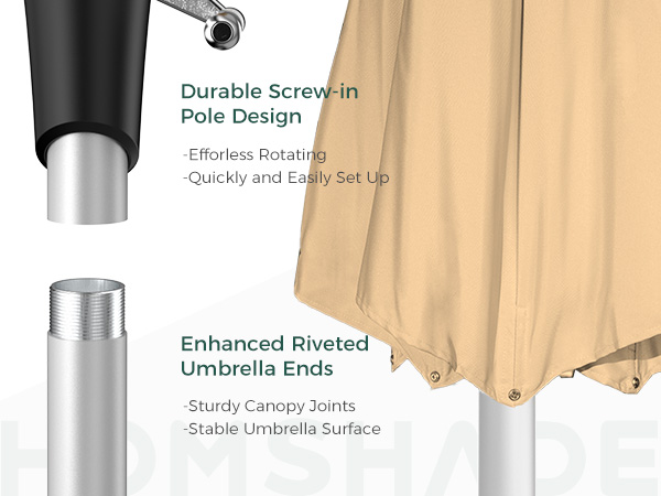HOMSHADE Patio Umbrella With Full Aluminum Frame