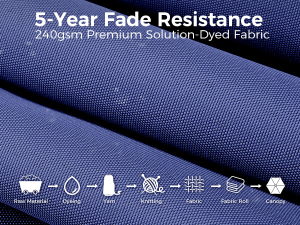 The canopy is made from high-quality 240 gsm fabric, ensuring it's sun-proof and built for outdoor use. And the color stays vibrant for a good 5 years.